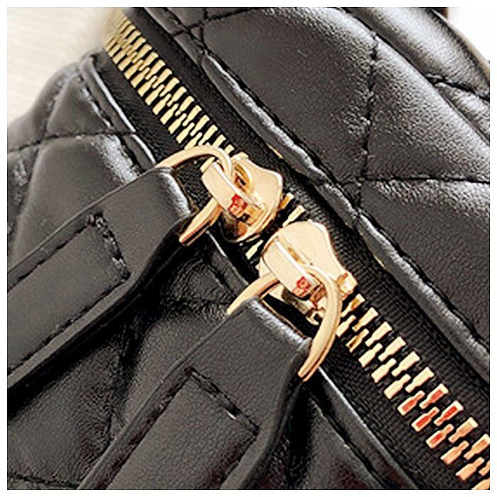 ・開口部は大きく開くダブルファスナー仕様。二つ折り財布からリップやファンデのようなコスメ類まで、小物の出し入れがスムーズ。