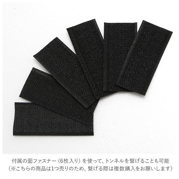 ・付属の面ファスナー(6枚入り)を使って、トンネルを繋げることも可能。(※こちらの商品は1つ売りのため、繋げる際は複数購入をお願いします。)