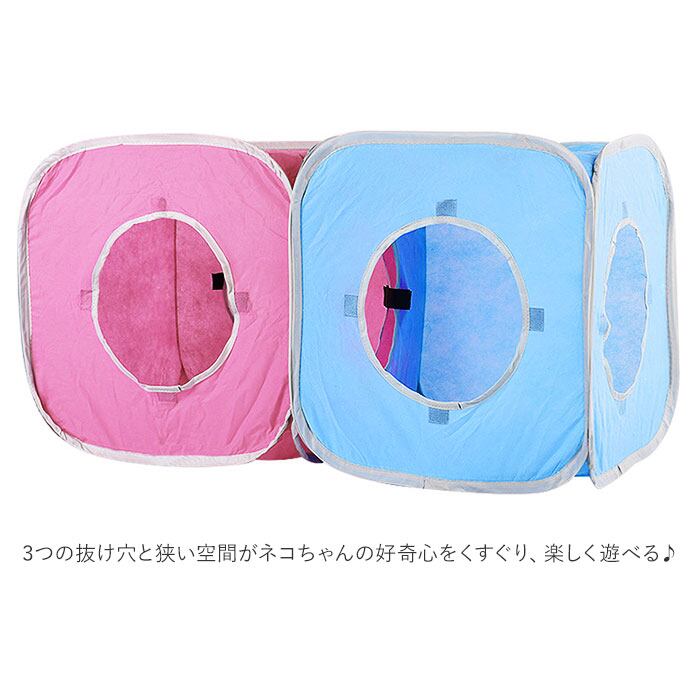 3つの抜け穴と狭い空間がネコちゃんの好奇心をくすぐり、楽しく遊べる♪