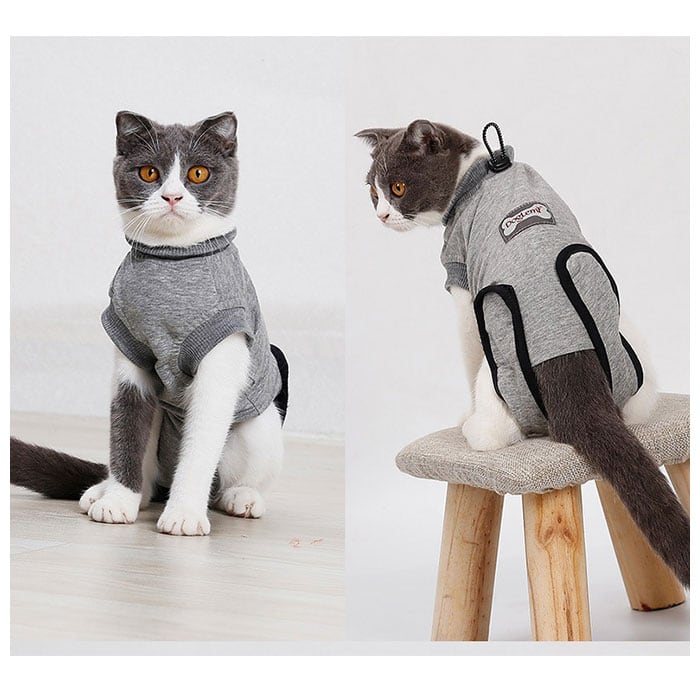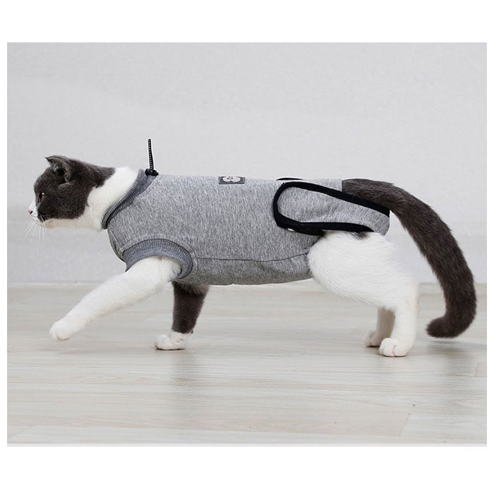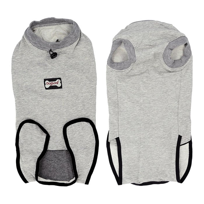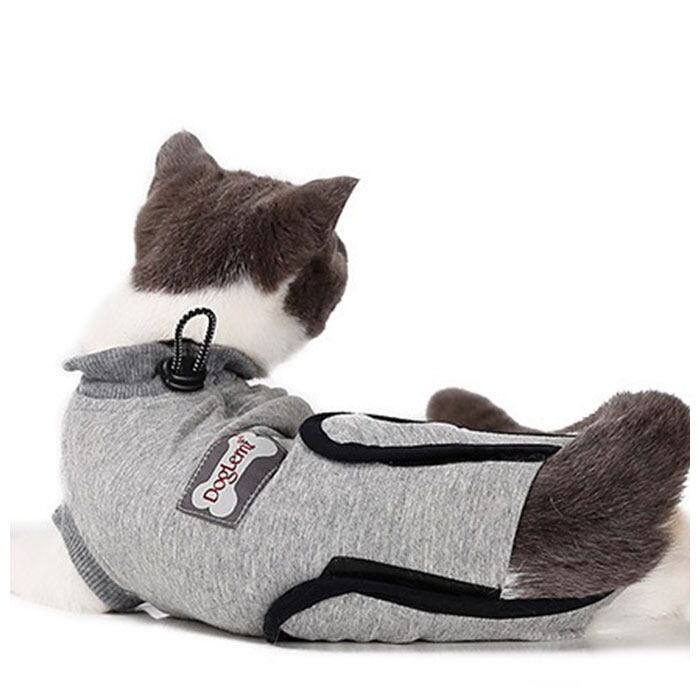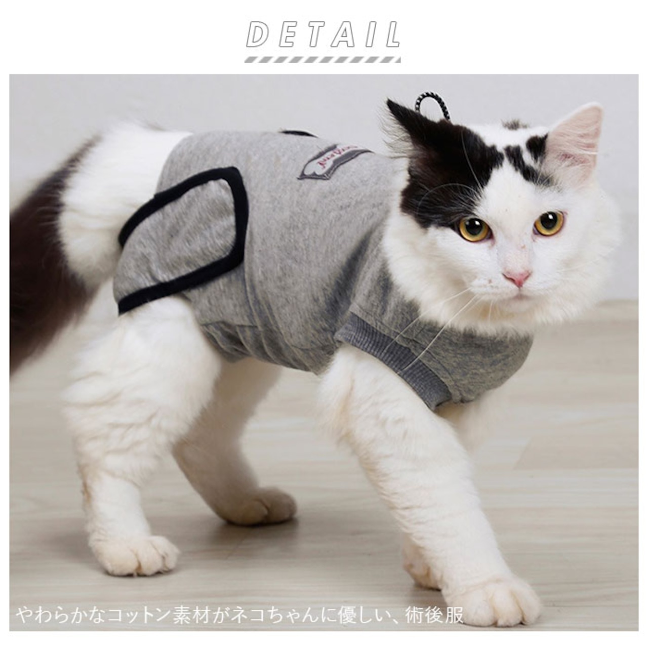 ・手術後や皮膚疾患の治療中のペットが、患部を舐めてしまったり、噛んでしまうことを防ぐお洋服。男の子も女の子も着用しやすい、グレーカラー!