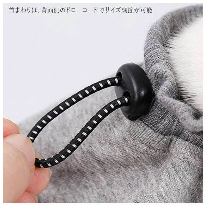 ・首まわりは、背面側のドローコードでサイズ調節が可能。