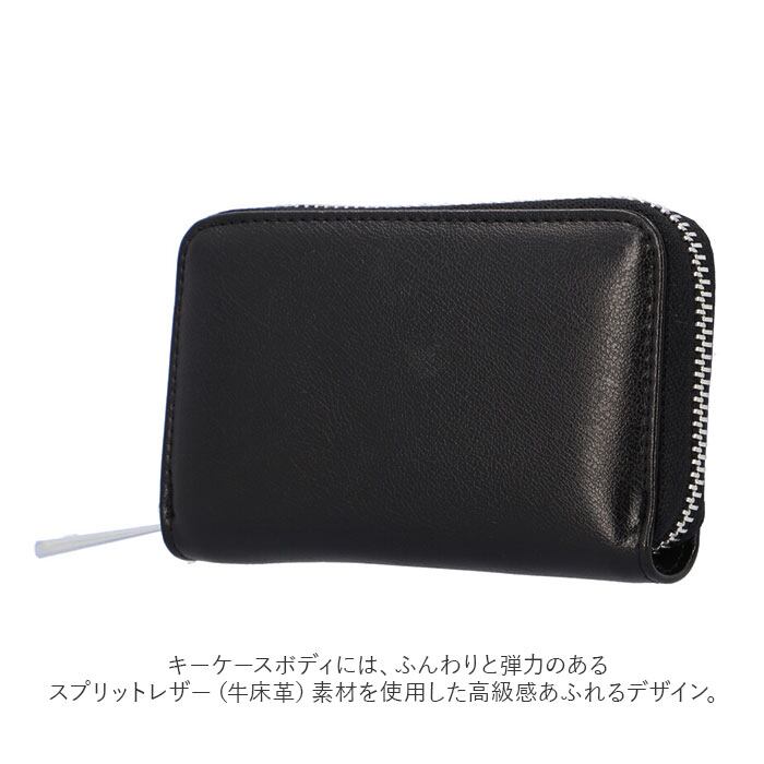 ・柔らかな質感が手に優しく馴染む・・・。キーケースボディには、ふんわりと弾力のあるスプリットレザー(牛床革)素材を使用した高級感あふれるデザイン。