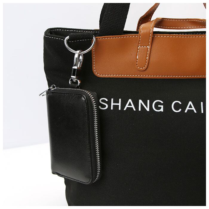 360度回転するカラビナフックで、バッグの持ち手やショルダーベルト、パンツのベルトループ等に取り付け可能。