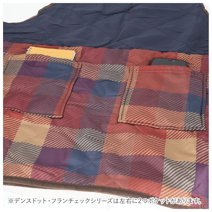 ・フロントの腰の高さには、スマホやレシピを書き留めたメモを入れるのにちょうどいいポケット付き。(※カラーやデザインにより、ポケットの数が異なります。アニマルシリーズは右側にポケット1つ。デンスドット・フランチェックシリーズは左右に2つポケットがあります。)