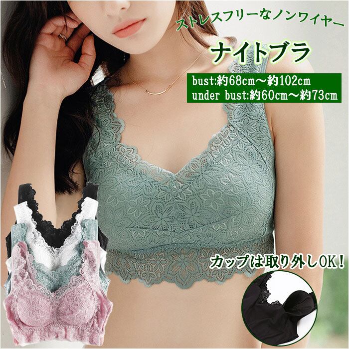 ナイトブラ おしゃれ 通販 ブラジャー ノンワイヤー ワイヤーなし フルカップ 夜用ブラ レース おしゃれ かわいい 大きいサイズ ブラ 総レース パッド入り パッド付き マタニティ ママ用品 インナー 下着
