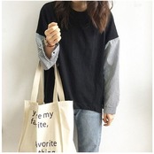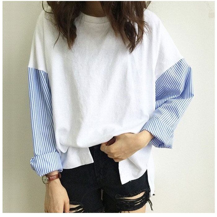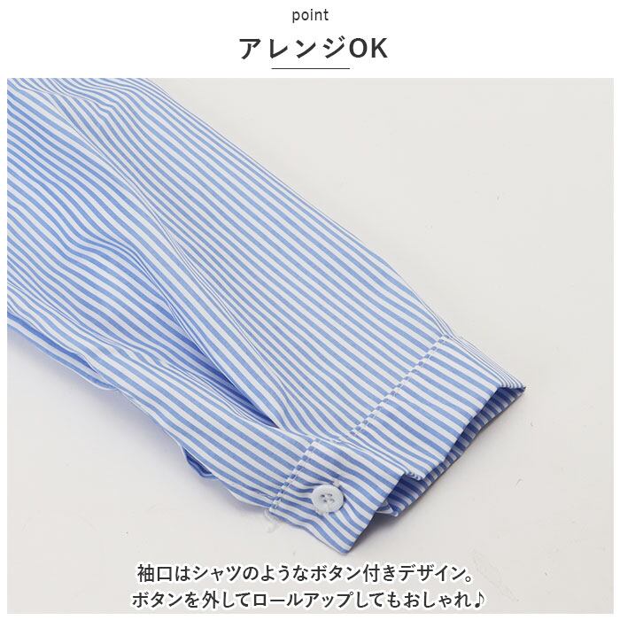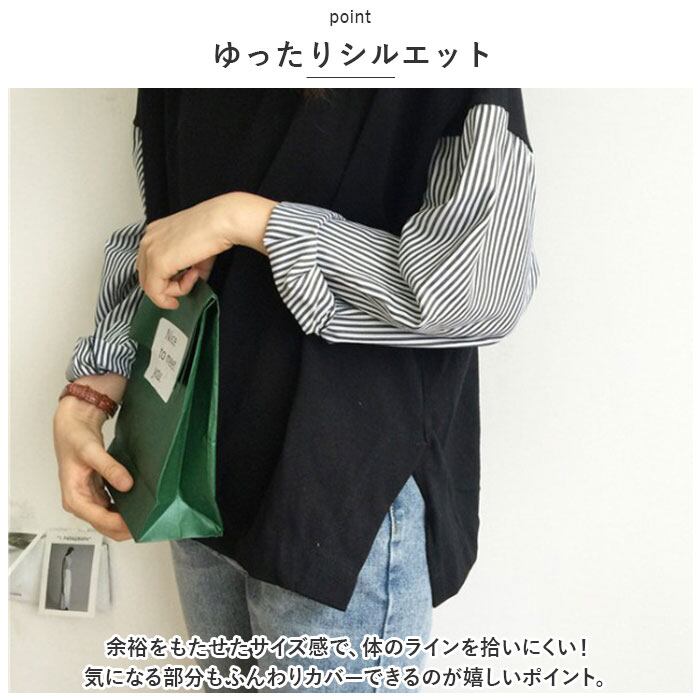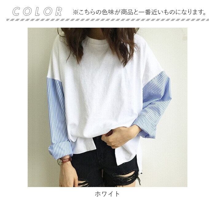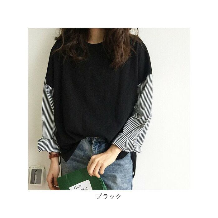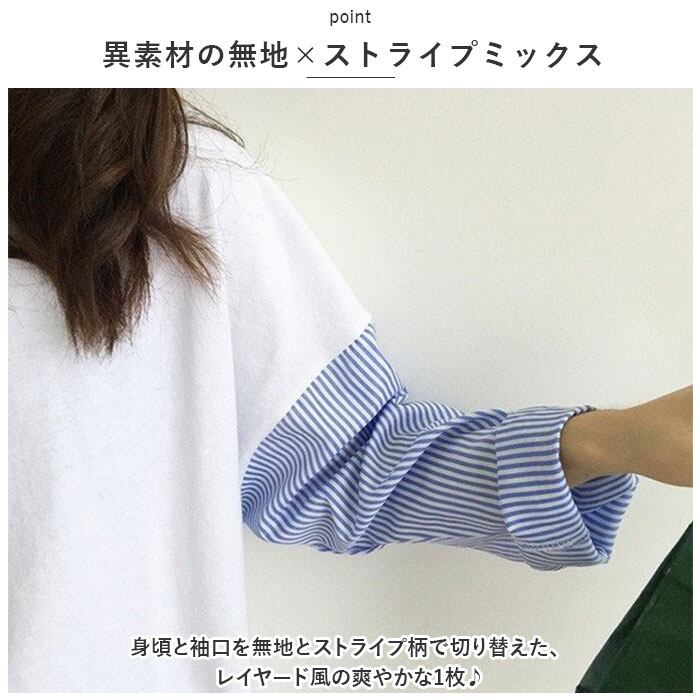 ・身頃と袖口を無地とストライプ柄で切り替えた、レイヤード風の爽やかな1枚♪