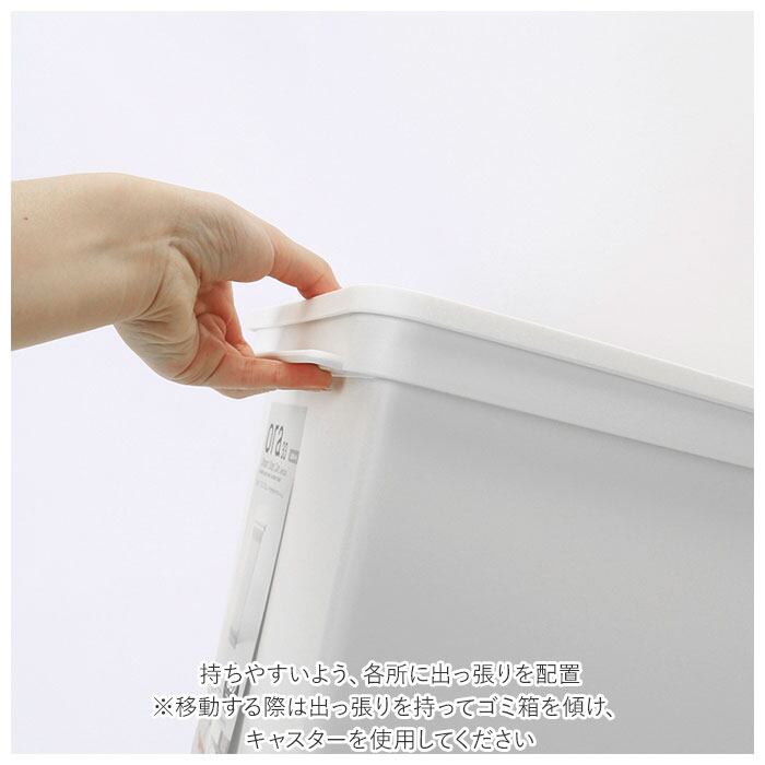 ・持ちやすいよう、各所に出っ張りを配置。(※移動する際は出っ張りを持ってゴミ箱を傾け、キャスターを使用してください。)