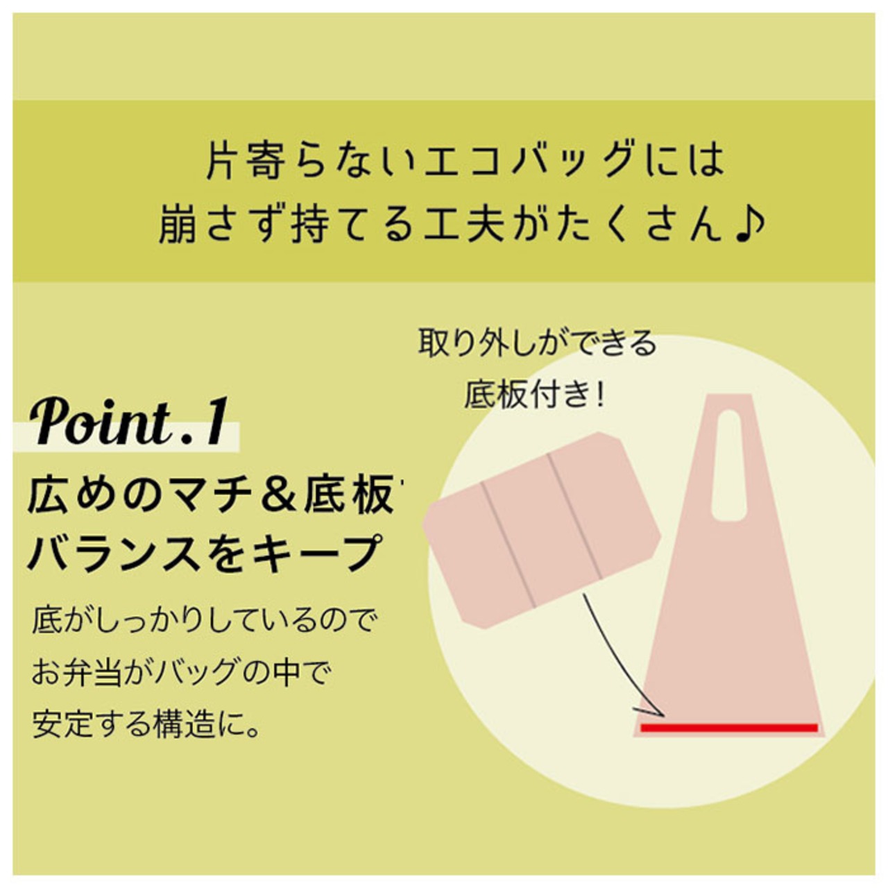 ・広めのマチ&底板でバランスをキープ。底がしっかりしているので、お弁当がバッグの中で安定する構造に。