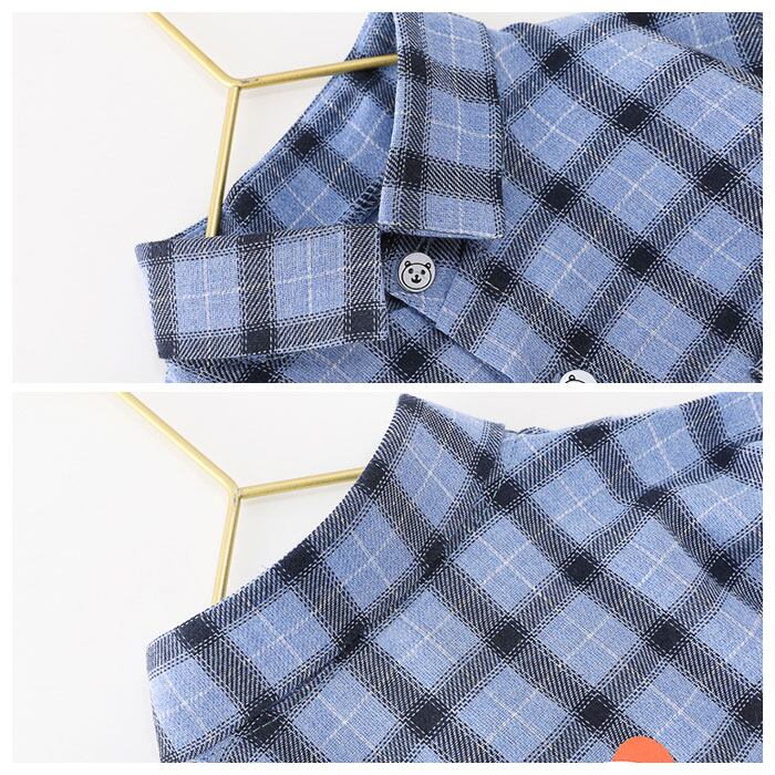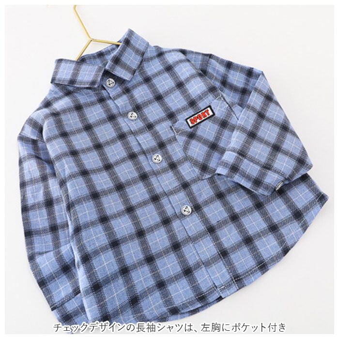 ・チェックデザインの長袖シャツは、左胸にポケット付き。