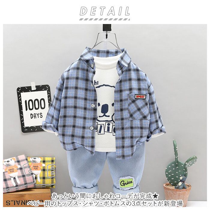 ・あっという間におしゃれコーデが完成★ベビー用のトップス・シャツ・ボトムスの3点セットが新登場。
