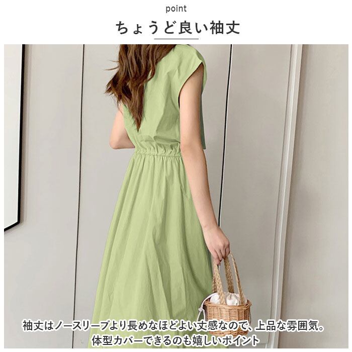 ・袖丈はノースリーブより長めなほどよい丈感なので、上品な雰囲気。体型カバーできるのも嬉しいポイント。