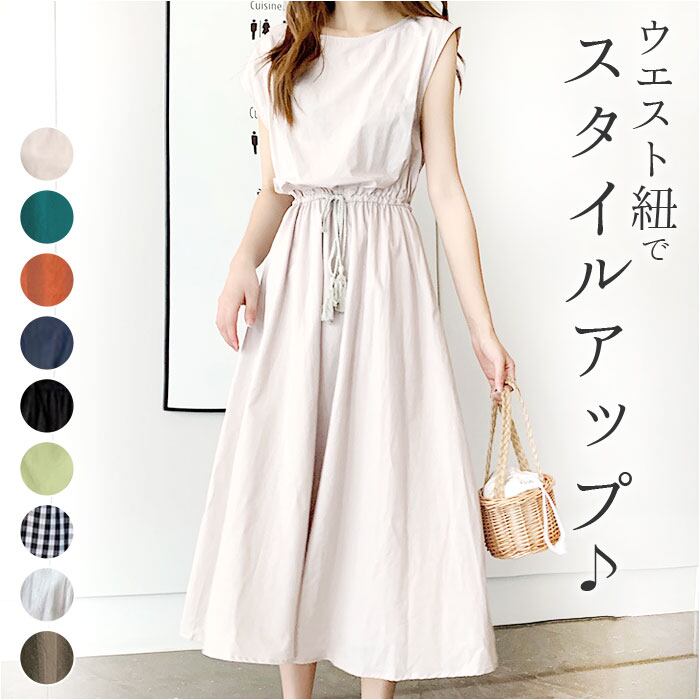 ・ウエスト絞りでスタイルアップ♪軽い着心地で暑い季節も涼やかな印象「ワンピース」が登場!