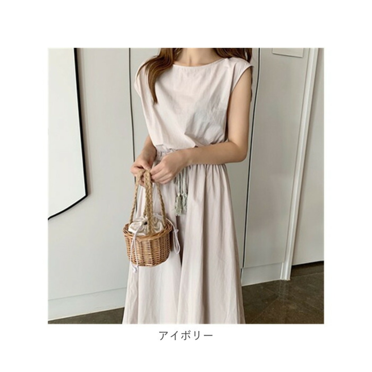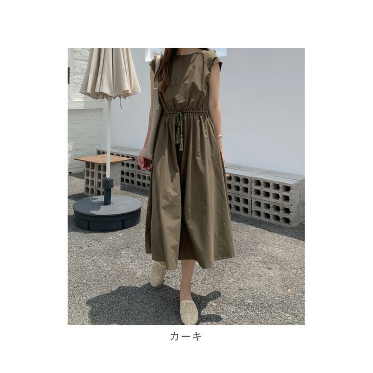 ・単調になりがちなワンピースコーデも、タッセル仕様のウエスト紐がアクセントになり大人可愛い印象に◎