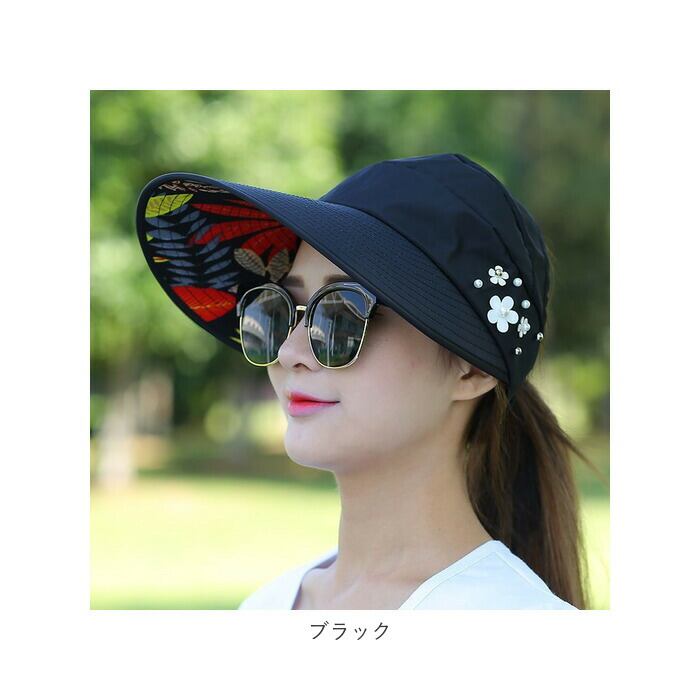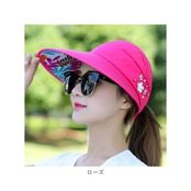 ・お花のチャームとパールのビジューが映える。日差しが強いお出かけの日に。ツバ広のサンバイザーが登場。