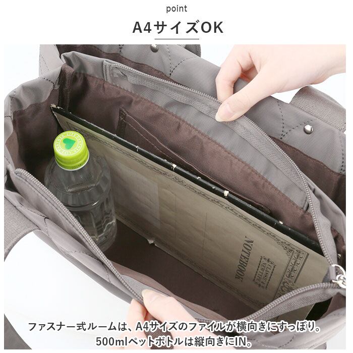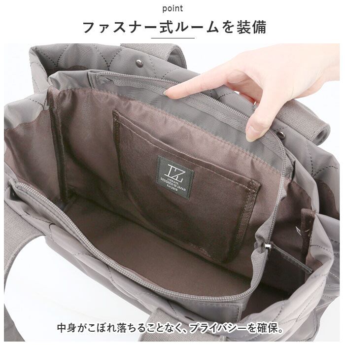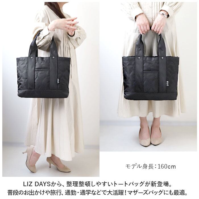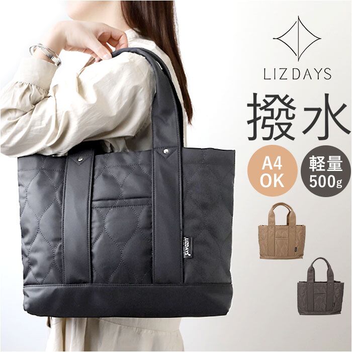 LIZDAYS トートバッグ 通販 リズデイズ lz-51501 レディース トートバック 通勤 通学 ナイロン 軽量 軽い A4 大きめ ファスナー付き ブランド 肩掛け オシャレ かわいい 上品 きれいめ 撥水 はっ水 キルティング レディースバッグ