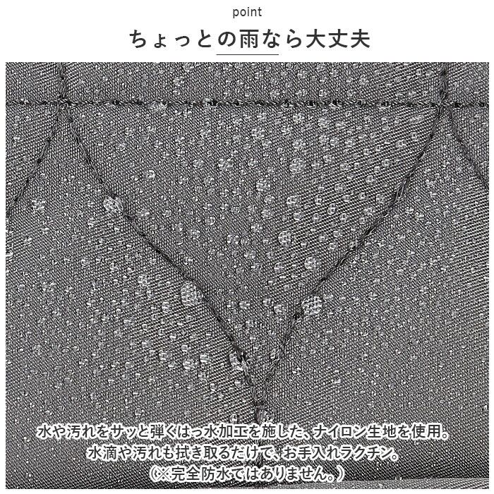 ・水や汚れをサッと弾くはっ水加工を施した、ナイロン生地を使用。水滴や汚れも拭き取るだけで、お手入れラクチン。(※完全防水ではありません。)