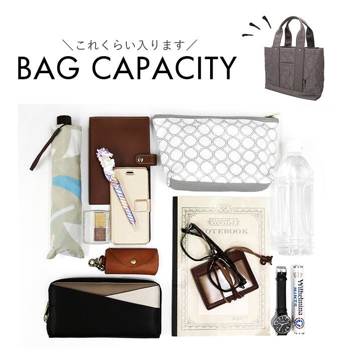 ・程よくマチを設け、お出かけに必要な小物がすっきり収まるトートバッグ。