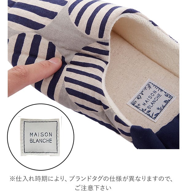 コットン&リネンのナチュラルな素材感に大人オシャレなボタニカルプリントのバブーシュースリッパです。かかとを倒しても立てても履ける2way仕様で23〜25cmに対応しています。肌の触れる部分はすべて天然素材を使用しているため、蒸れにくく優しい肌触りです。「MAISON BLANCHE」のネームタグがおしゃれにプリントされています。