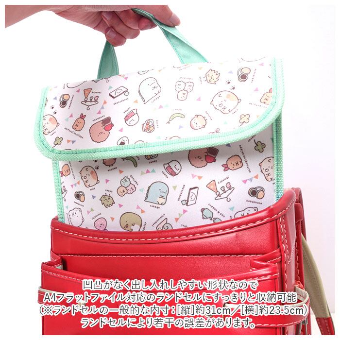 ・凹凸がなく出し入れしやすい形状なので、A4フラットファイル対応のランドセルにすっきりと収納可能。(※ランドセルの一般的な内寸:[縦]約31cm/[横]約23.5cm。ランドセルにより若干の誤差があります。)