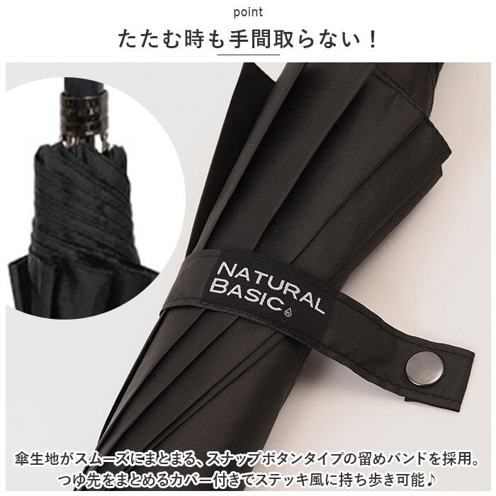 ・傘生地がスムーズにまとまる、スナップボタンタイプの留めバンドを採用。つゆ先をまとめるカバー付きでステッキ風に持ち歩き可能♪