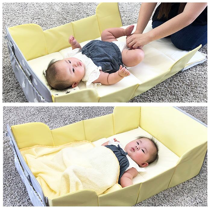・ぱっと広げて、どこでもねんね!新生児から約12か月ぐらいまで使えるベビーベッド「どこでもねんね」
