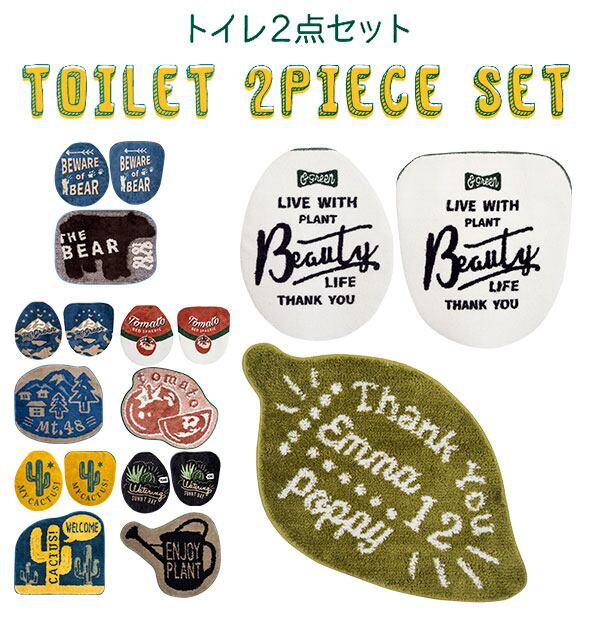 U・O型用、洗浄・暖房便座用の2タイプ。緑をテーマに彩られたトイレカバー&マットの2点セットです。