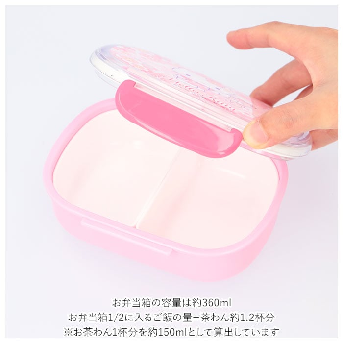 ・お弁当箱の容量は約360ml。お弁当箱1/2に入るご飯の量は、お茶わん約1.2杯分で、お子さまの栄養管理もしやすい!(※お茶わん1杯分を約150mlとして算出しています)