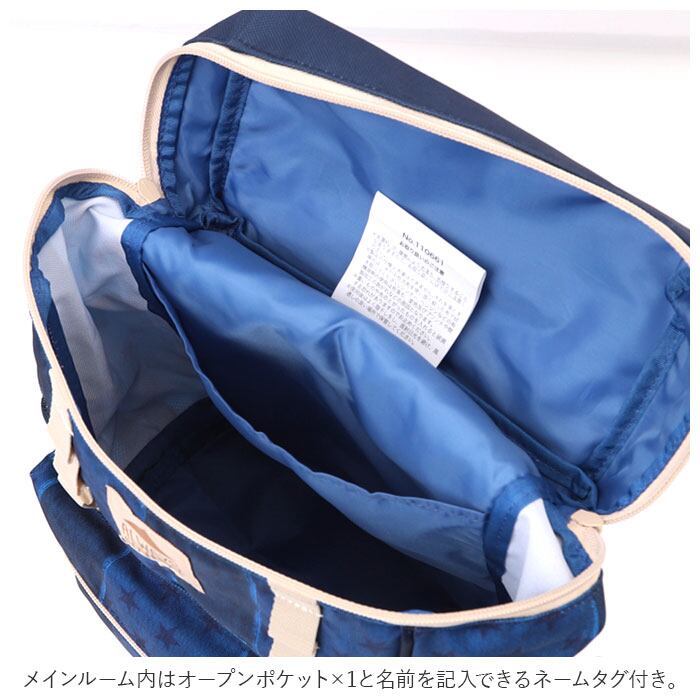 ・メインルーム内はオープンポケット×1と名前を記入できるネームタグ付き。