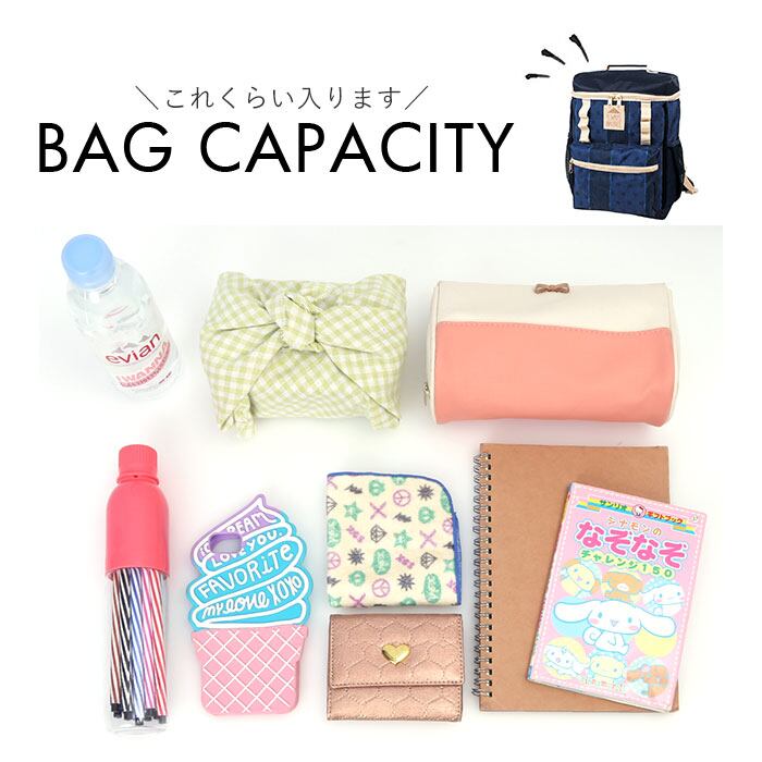 ・長ズボンや厚手の洋服も一枚ずつ入り、少し遠くのお出かけに便利。また、開口部はダブルファスナーで大きく開き、マチ幅が広いのでお弁当箱など出し入れやすいのが特徴!