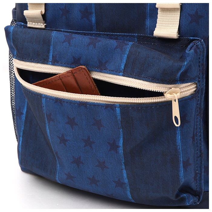 ・フロントのポケットはファスナーで開閉可能。サッと取り出したい小物の収納におススメ。
