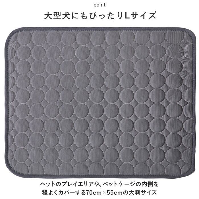 ・ペットのプレイエリアや、ペットケージの内側を程よくカバーする70cm×55cmの大判サイズ。身体の大きなワンちゃんの寝床にも最適!