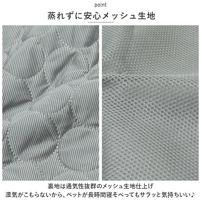 ・裏地は通気性抜群のメッシュ生地仕上げ。湿気がこもらないから、ペットが長時間寝そべってもサラッと気持ちいい♪