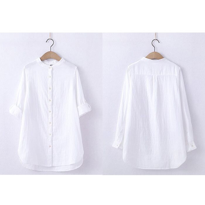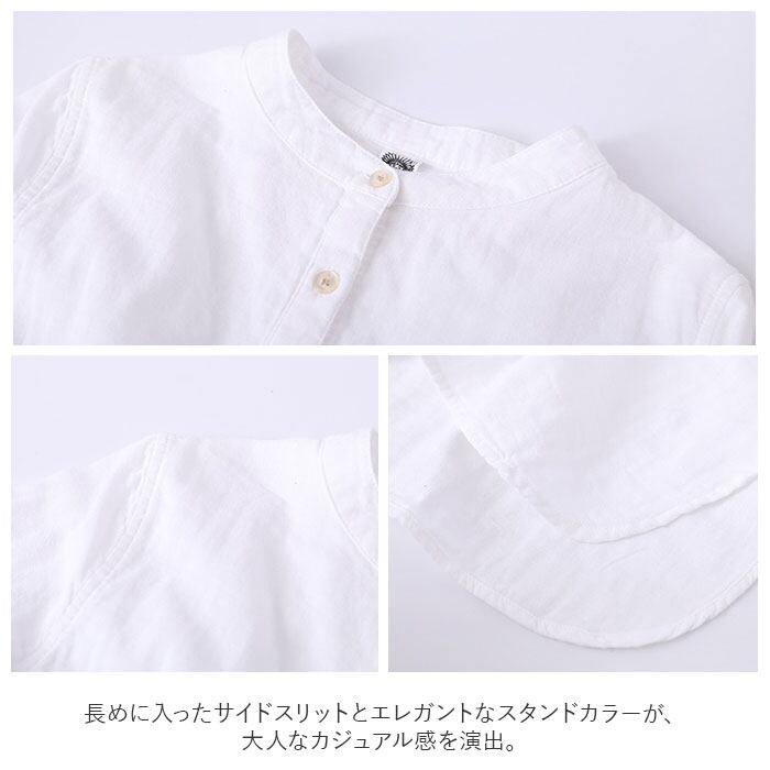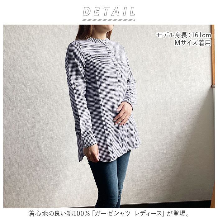 ガーゼ シャツ 通販 ロング ガーゼシャツ レディース チュニック ロングシャツ 長袖 襟 ブラウス ダブルガーゼ 綿100% 羽織り コットン 立ち襟 30代 40代 50代