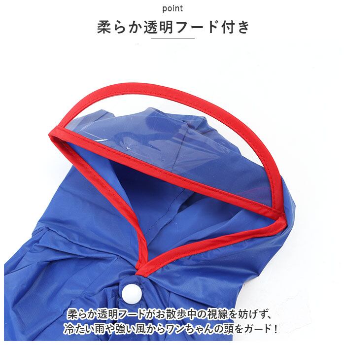 ・柔らか透明フードがお散歩中の視線を妨げず、冷たい雨や強い風からワンちゃんの頭をガード!