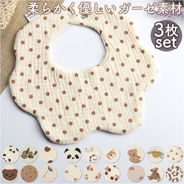 スタイ 3枚セット ベビー 赤ちゃん 3枚 通販 よだれかけ 前掛け 前かけ よだれ よだれカバー ビブ ガーゼ 6層 コットン 綿 ナチュラル 女の子 男の子 お食事 新生児 かわいい 出産祝い ギフト