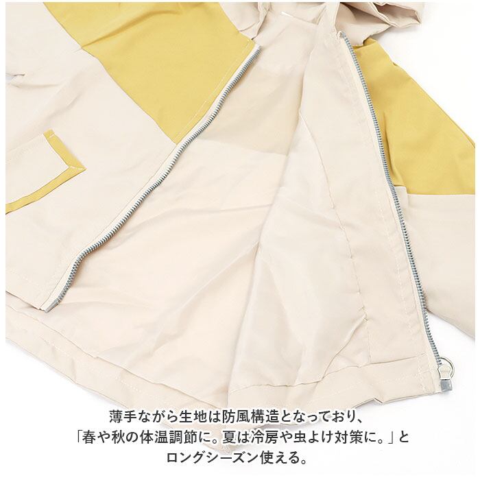 ・薄手ながら生地は防風構造となっており、「春や秋の体温調節に。夏は冷房や虫よけ対策に。」とロングシーズン使える。