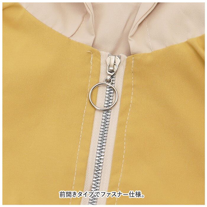 ・前開きタイプでファスナー仕様。フードも付いているので突然の雨にも対応。