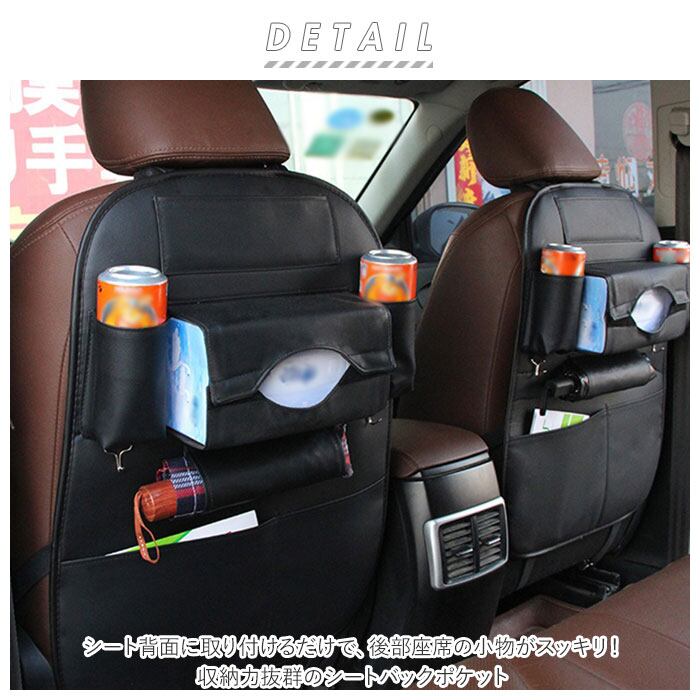 ・シート背面に取り付けるだけで、後部座席の小物がスッキリ!収納力抜群のシートバックポケット。