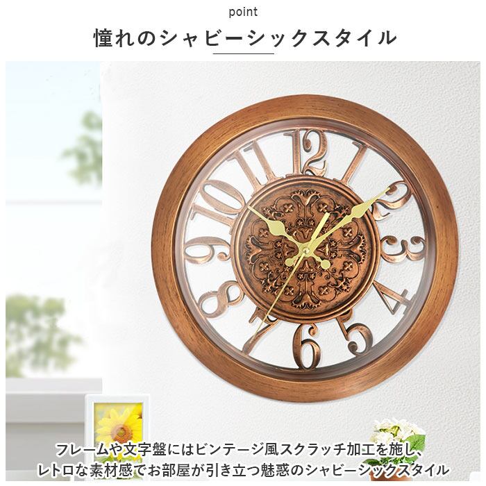 ・フレームや文字盤にはビンテージ風スクラッチ加工を施し、レトロな素材感でお部屋が引き立つ魅惑のシャビーシックスタイル。