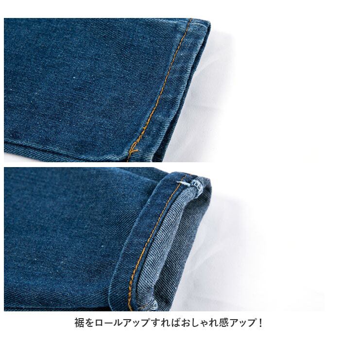 ・トップスをブラウスやTシャツ、ニットなどに自由に変えることで、コーデの表情が変わり、裾をロールアップすればおしゃれ感アップ!
