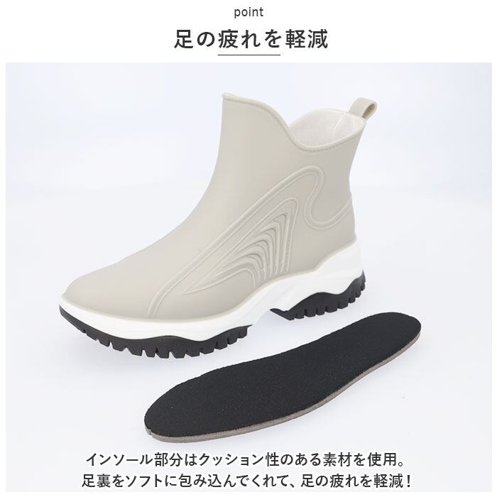 ・雨の日のお出かけやアウトドアシーンで活躍する、ショート丈のレインブーツ。