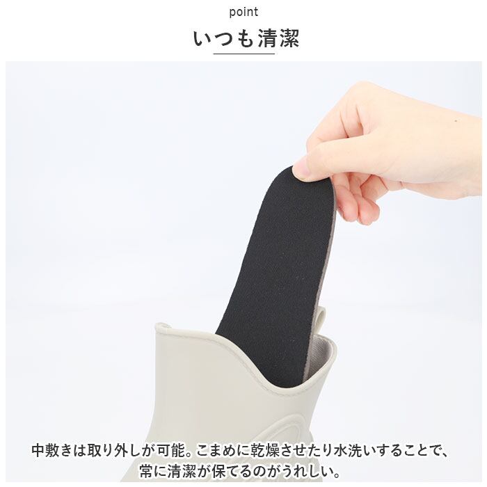 ・中敷きは取り外しが可能。こまめに乾燥させたり水洗いすることで、常に清潔が保てるのがうれしい。