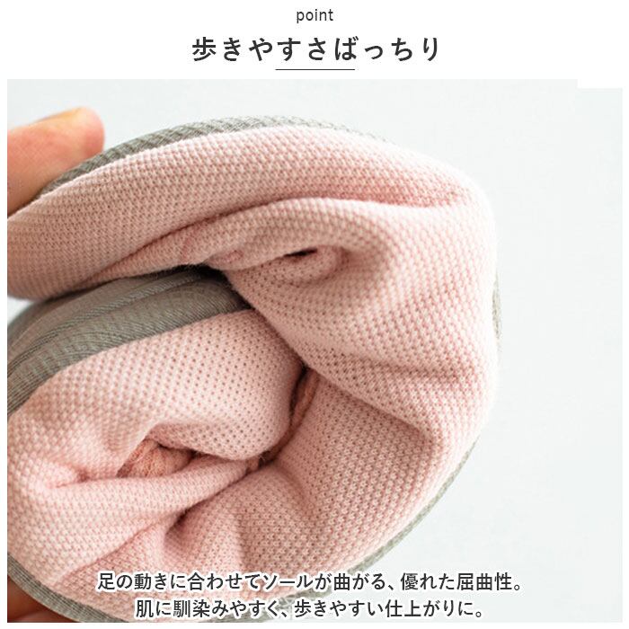 ・足の動きに合わせてソールが曲がる、優れた屈曲性。肌に馴染みやすく、歩きやすい仕上がりに。