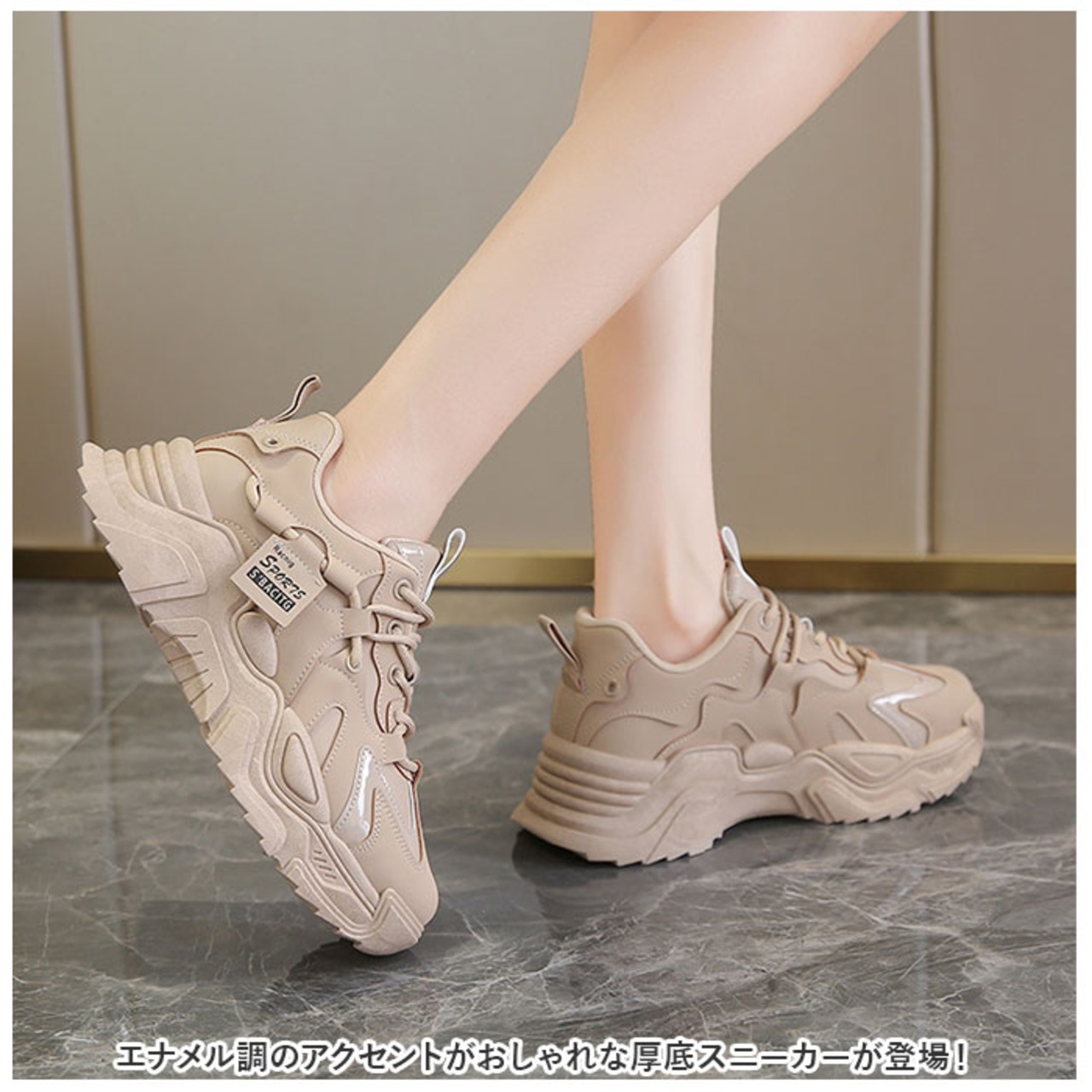 ・エナメル調のアクセントがおしゃれな厚底スニーカーが登場!