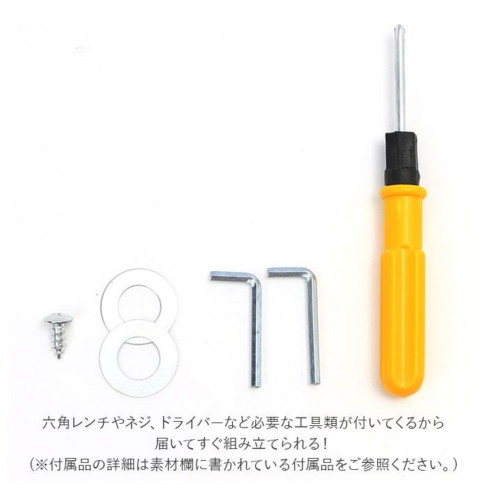 ・さらに六角レンチやネジ、ドライバーなど必要な工具類が付いてくるから届いてすぐ組み立てられる!(付属品の詳細は素材欄に書かれている付属品をご参照ください。)