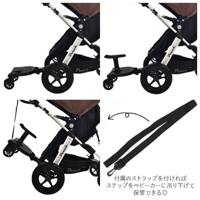・また付属のストラップを付ければステップをベビーカーに吊り下げて保管できる◎