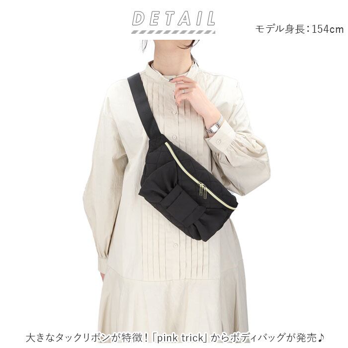 KAMIO JAPAN カミオジャパン キルティング ボディバッグ 通販 ボディバック ボディーバッグ ボディーバック リボン ウエストバッグ ウエストバック 撥水 レディース きれいめ かわいい 上品 おしゃれ pink trick ピンクトリック タック 旅行 アウトドア