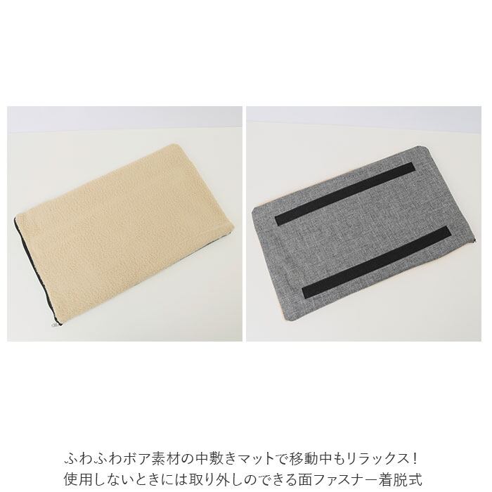・ふわふわボア素材の中敷きマットで移動中もリラックス!使用しないときには取り外しのできる面ファスナー着脱式。