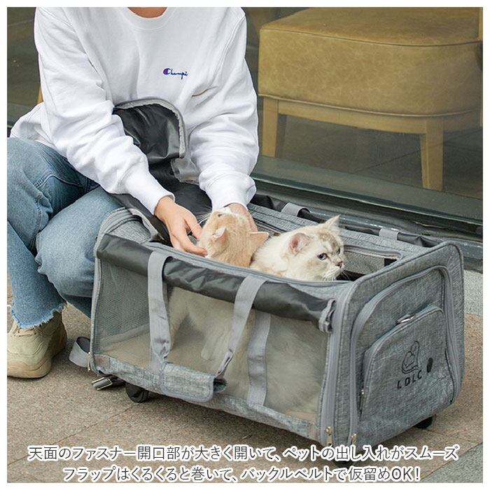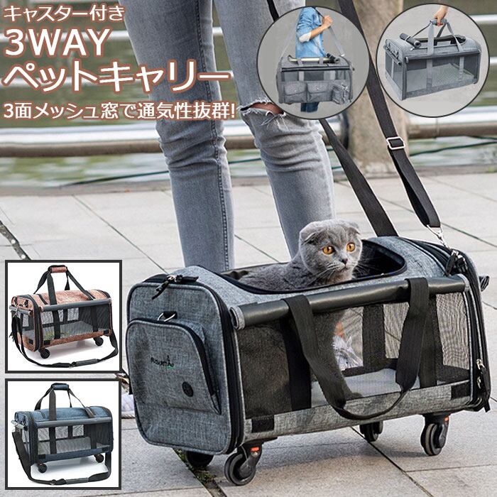 ・ペットの身体を持ち上げずにらくらく移動。コロコロ転がしながらお出掛けできる「キャスター付き3WAYペットキャリー」