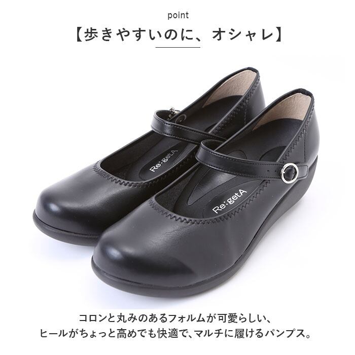 リゲッタ パンプス Regetta R19001 通販 ラウンドトゥパンプス ストラップ ウェッジソール レディース ラウンドトゥ ウェッジパンプス ヒール 5cm 履きやすい 歩きやすい 仕事 ビジネス Re:getA 入学式 卒業式 結婚式 パーティー 靴 シューズ カジュアルシューズ